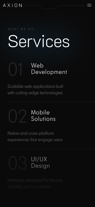 AXiON is a technology concept exploring a minimal identity and web presence for a forward-looking digital platform. The project focuses on clarity, speed, and structural precision across logo and interface.